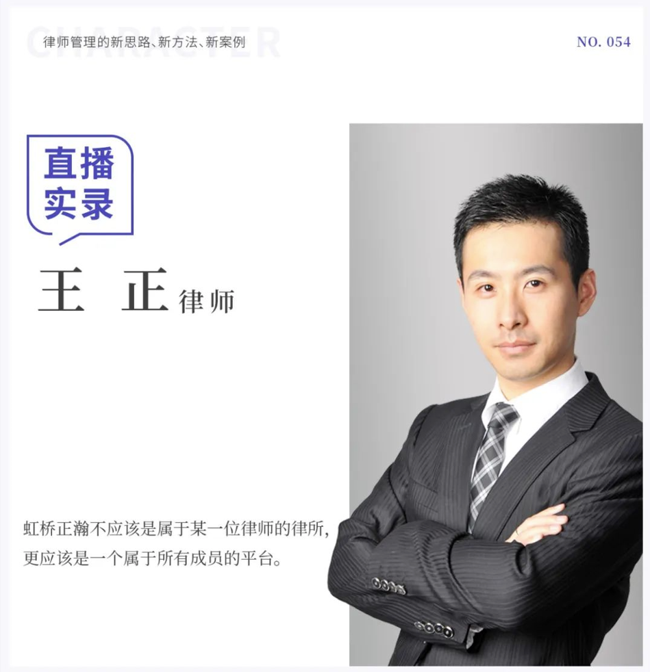 在深度探寻公司制发展道路的过程中,虹桥正瀚发生了哪些故事?他们所坚持的纯粹计点制又为律所成长带来了怎样的影响与改变?带着这些好奇,我们在哲响直播间对谈了上海虹桥正瀚律师事务所合伙人王正律师,和他聊了聊虹桥正瀚的公司制理想与坚持。