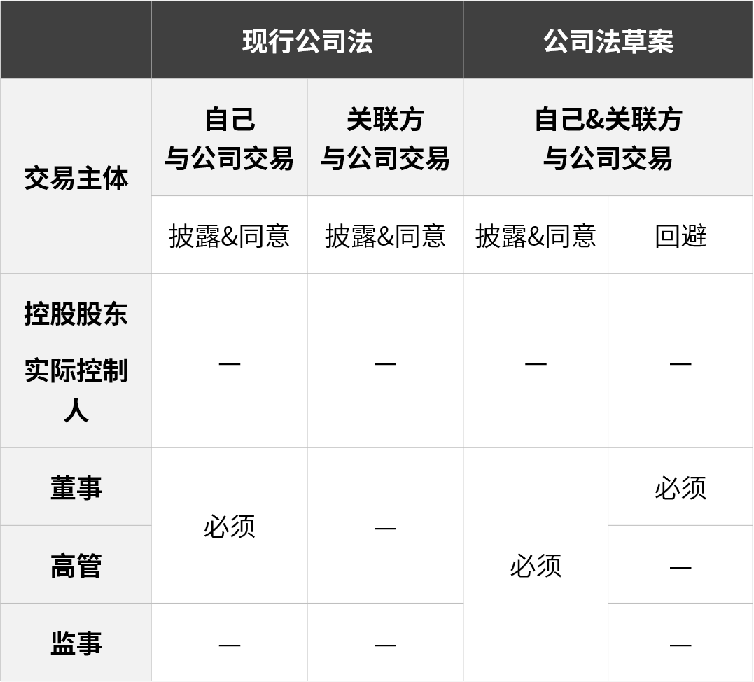 《公司法草案》较现行《公司法》就关联交易披露及决策要求变化如下: