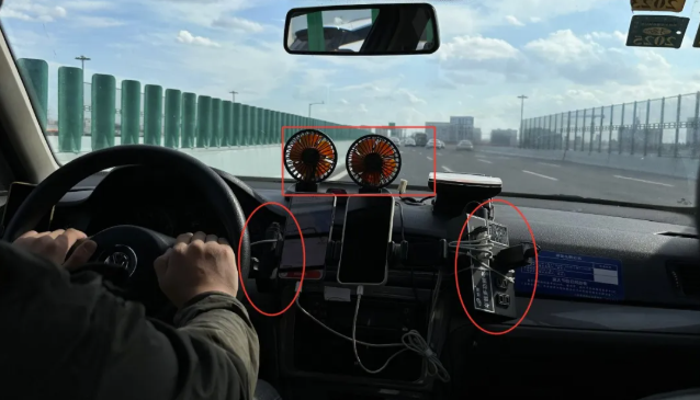 他在前面装了两个风扇,说这车后排没有空调出风口,前排冷死,后排热死,风扇让空气流动一下,就好多了。