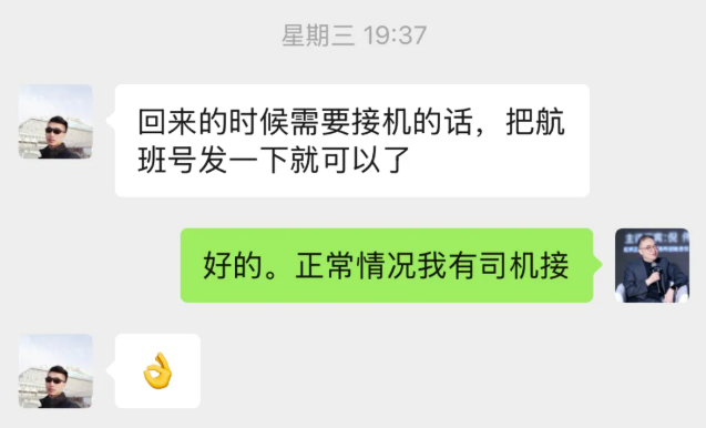 一路聊,很快到了机场。临下车,我主动告诉他手机号(咦,这是为什么呀?),当下他就加了我的微信。一会儿给我发了条信息: