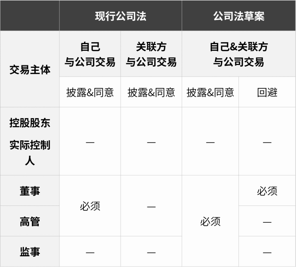 《公司法草案》较现行《公司法》就关联交易披露及决策要求变化如下: