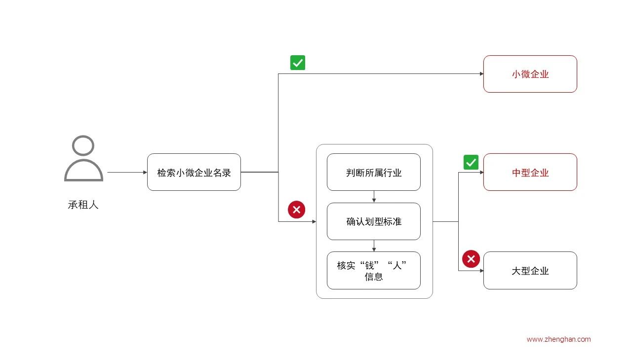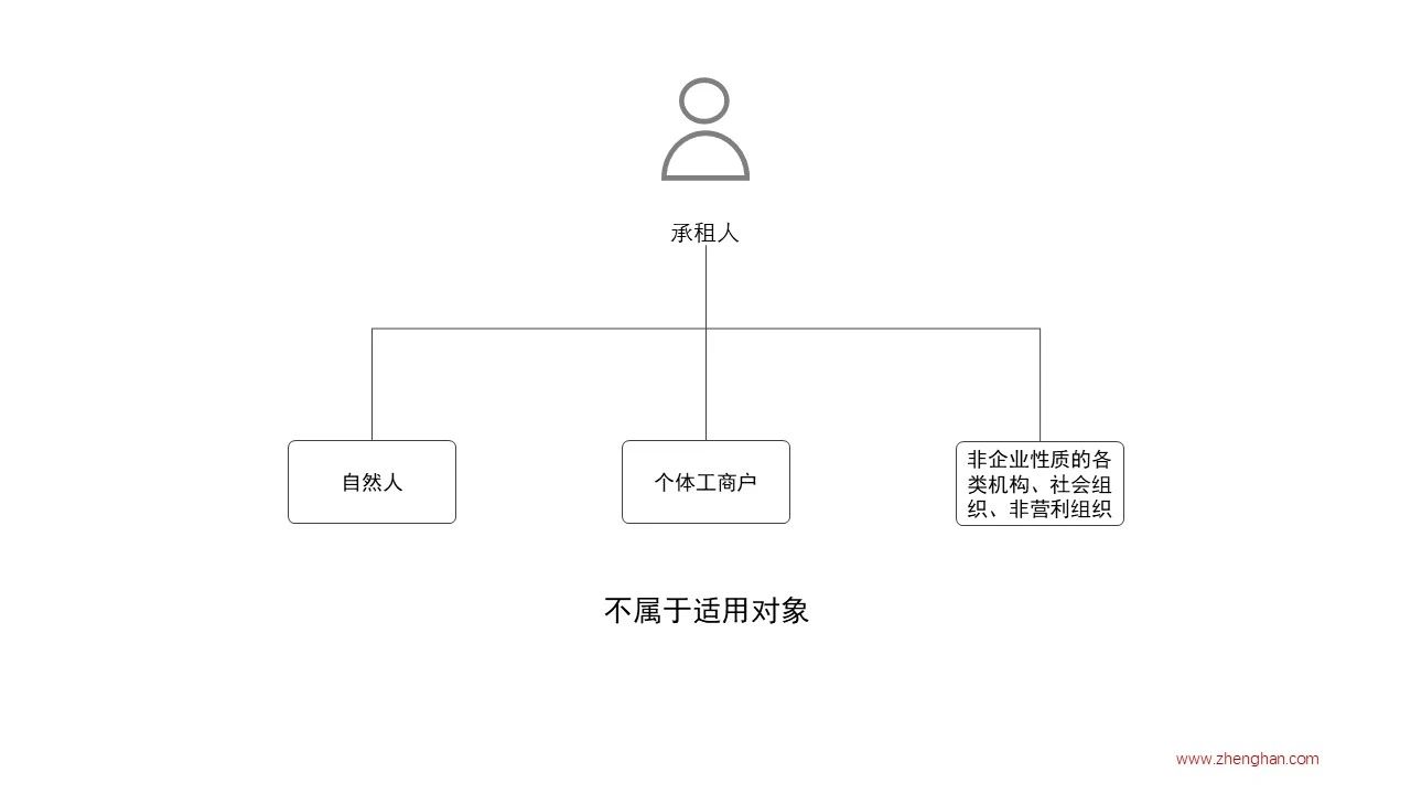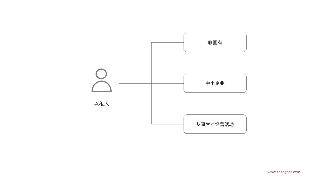 相较于出租人较为明确的类型划分,承租人的类型更为复杂。根据政策要求,承租人需要同时满足以下三个条件,方能适用政策。
