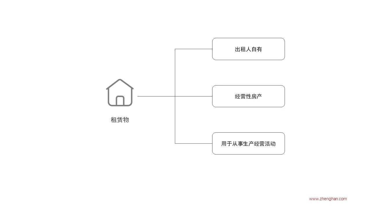 租赁物中的这一条件有别于承租人中的类似条件,指的是租赁物必须用于从事生产经营活动。不在于租赁物本来是什么用途,而在于租赁物用来干什么。例如,承租人向出租人承租了某个办公单元,但自行改造成了职工宿舍,即便租赁物具备经营性用途,但并未实际用于从事生产经营活动,因而不能适用政策。