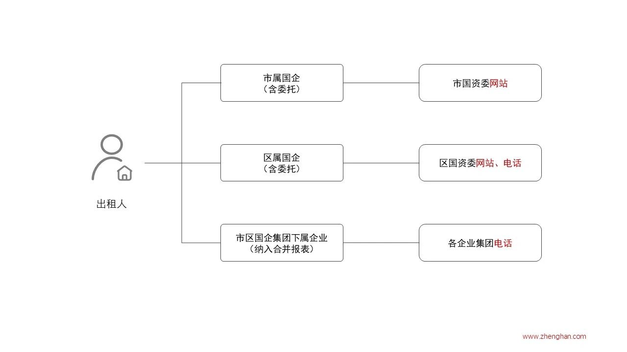 从上图中我们可以看到,作为实施主体的出租人主要有三种类型。第一种是上海市市属国有企业集团(含委托监管企业),第二种是上海市区属国有企业集团(含委托监管企业),第三种是市区两级国有企业集团纳入合并报表范围内的下属企业。这三种类型的企业以国有企业为主,我们可以通过对应的公开查询渠道核实出租人是否属于其中的某一种类型。此外,由于政策要求出租人承担主动实施政策的职责,出租人一般也会通过公开渠道发布具体政策公告或直接与承租人进行沟通。