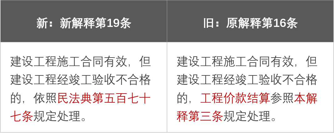 原规定在处理该种情形时,采取了将有效合同参照合同无效的情形进行价款结算处理的方式。根据最高院《理解与适用》中的观点,该条款体现了一切以工程质量为出发点的原则;以工程质量为严格标准,即使合同有效,但在建设工程不合格的情形下仍按照无效合同的规定结算工程价款。