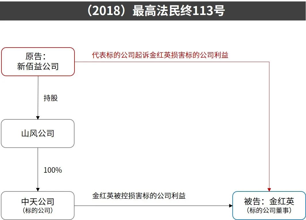 [3]最高院观点:“根据《中华人民共和国公司法》第一百四十九条、第一百五十一条的规定,董事、监事、高级管理人员执行公司职务时违反法律、行政法规或者公司章程的规定,给公司造成损失以及他人侵犯公司合法权益给公司造成损失时,符合法定条件的股东有权提起股东代表诉讼。新佰益公司认为中天公司原高级管理人员侵害中天公司权益,并以维护中天公司利益为目的提起本案诉讼。山风公司作为中天公司的唯一股东,在中天公司合法权益受到董事、监事、高级管理人员或他人侵害而中天公司怠于提起诉讼的情况下,有权依据上述法律规定以中天公司股东身份提起股东代表诉讼。本案中,新佰益公司系山风公司的股东,并非中天公司的股东,其提起维护中天公司利益的股东代表诉讼,缺乏法律依据。