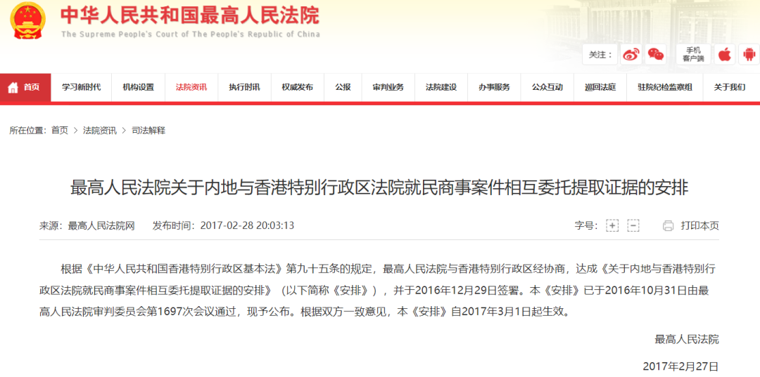 2019年10月1日生效的《内地与香港特别行政区法院就仲裁程序相互协助保全的安排》在保全协助方面取得重大进展,为我国香港与内地之间就仲裁程序中的保全提供的依据。