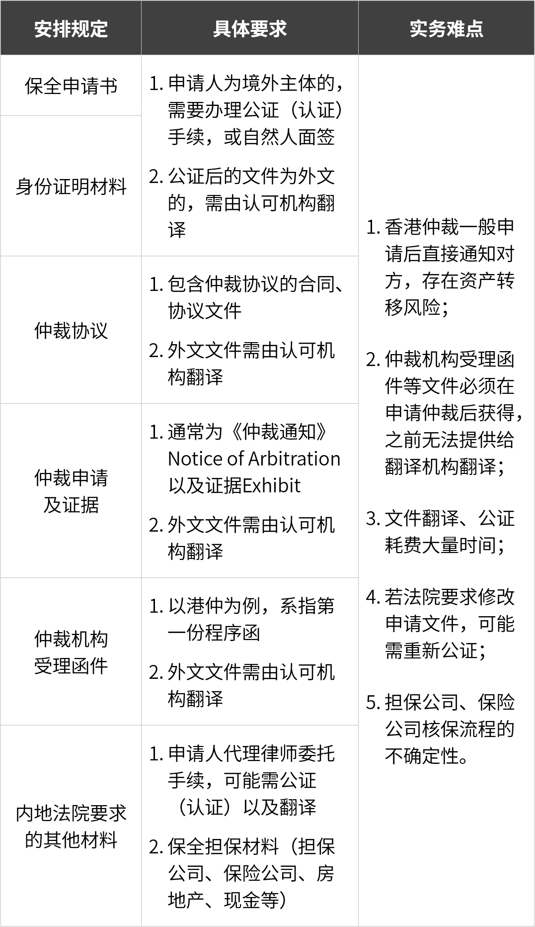 该安排亦明确具体的保全申请要求整理如下: